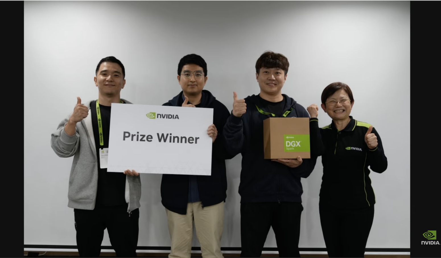 그리곤 DGX Spark 쪽을 가리켰죠. 상품이 DGX Spark였거든요. 안 웃으실 상황을 대비해 농담을 하나 더 준비해 뒀는데, 다행히 심사위원분들이 먼저 웃어주셨어요.